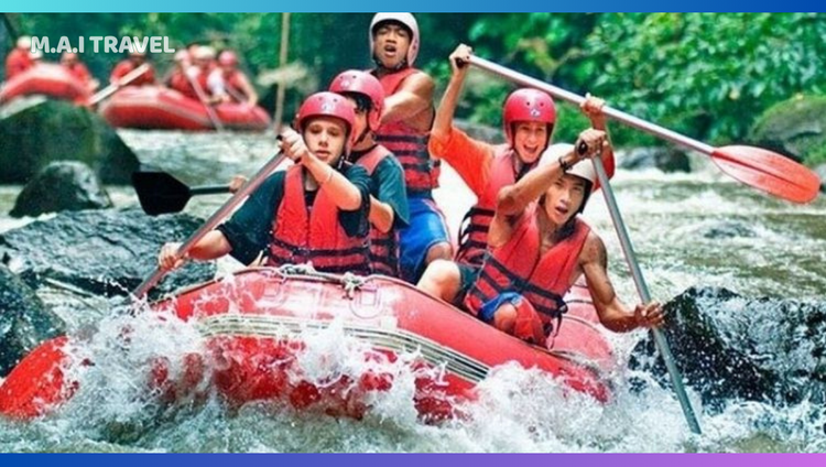 - Trải nghiệm chèo thuyền vượt thác White Rafting Quý khách sẽ có những trải nghiệm đặc biệt khi băng qua những cánh rừng già nhiệt đới trên dòng sông Ayung hiền hoà nhưng không kém phần quanh co uốn lượn tại Bali.