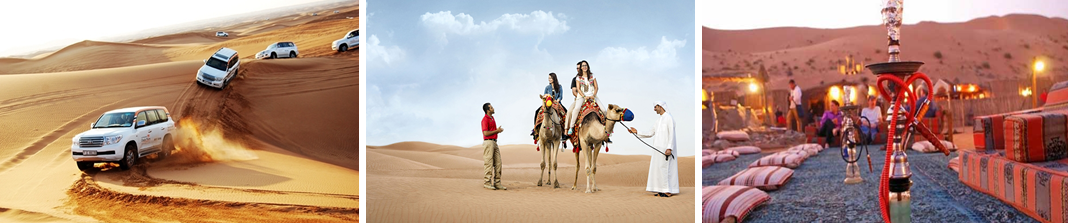 Đến điểm dừng chân, cửa ngõ trước khi vào sa mạc, Quý khách bắt đầu cuộc phiêu lưu của mình với trò chơi mạo hiểm trên các đồi cát. Cuối hành trình, Quý khách sẽ đến điểm cắm trại Lạc đà – một địa điểm tập kết của người dân địa phương để đón các đoàn khách du lịch. Chính nơi đây Quý khách sẽ tận hưởng cảm giác tuyệt vời khi chiêm ngưỡng hoàng hôn sa mạc như một dân du mục thực thụ. Quý khách sẽ được chào đón một cách nồng ấm bởi người dân nơi đây, thưởng thức những tách cafe Ả Rập, hút thử sheesha, uống thử sữa lạc đà… và đặc biệt là một bữa tiệc buffet BBQ cùng với các vũ công belly dance cực kỳ quyến rũ.