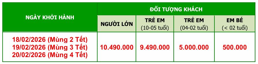 GIÁ TOUR MÙNG 2 (18/02/2025) |