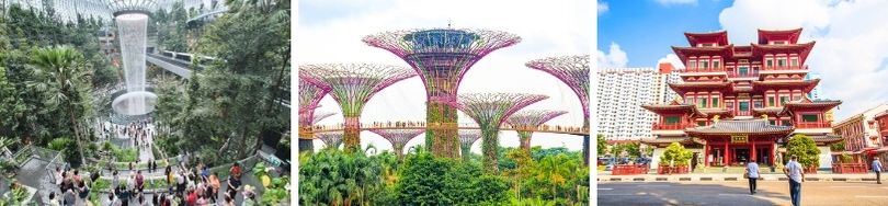 Gardens By The Bay: Nằm ngay trung tâm khu đô thị mới của Singapore bên bờ vịnh Marina. Ngay sát hồ chứa nước ngọt Marina, và kề cận khu tổ hợp casino khách sạn Marina Bay Sand. Khu vườn thực vật nhân tạo Garden by the Bay này mở cửa từ 05h sáng đến 02h đêm hàng ngày. Gardens by the Bay là nơi lưu giữ của khoảng 250 nghìn loài cây quý giá, được chia thành 3 khu vực: Bay South, Bay East và Bay Central. Điểm nổi bật của khu vườn là sự kết hợp hài hòa giữa đô thị với thiên nhiên nhằm đảm bảo vẻ đẹp của cảnh quan đô thị và nhằm tăng chất lượng cuộc sống con người. Khu công viên này còn được chủ ý làm thành một biểu tượng cho tính đa dạng về sắc tộc, tôn giáo và văn hóa Singapore.