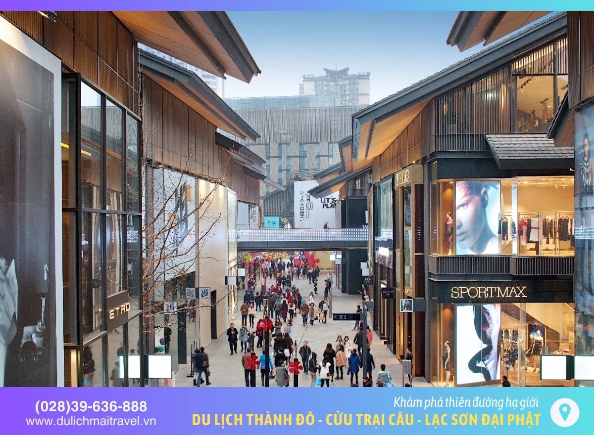 Buổi sáng: Đoàn dùng bữa sáng tại khách sạn. Tham quan Thái Cổ Lý (Taikoo Li) – khu phức hợp mua sắm cao cấp kết hợp kiến trúc cổ hiện đại, và Xuân Hy Lộ – con phố thương mại sầm uất nhất Thành Đô với hơn 700 cửa hàng, trung tâm IFS (check-in tượng gấu trúc trèo tường khổng lồ), hàng loạt món ăn đường phố: mì cay, lẩu cốc, trà sữa, bánh bao nhân thịt… Không khí trẻ trung, nhộn nhịp.