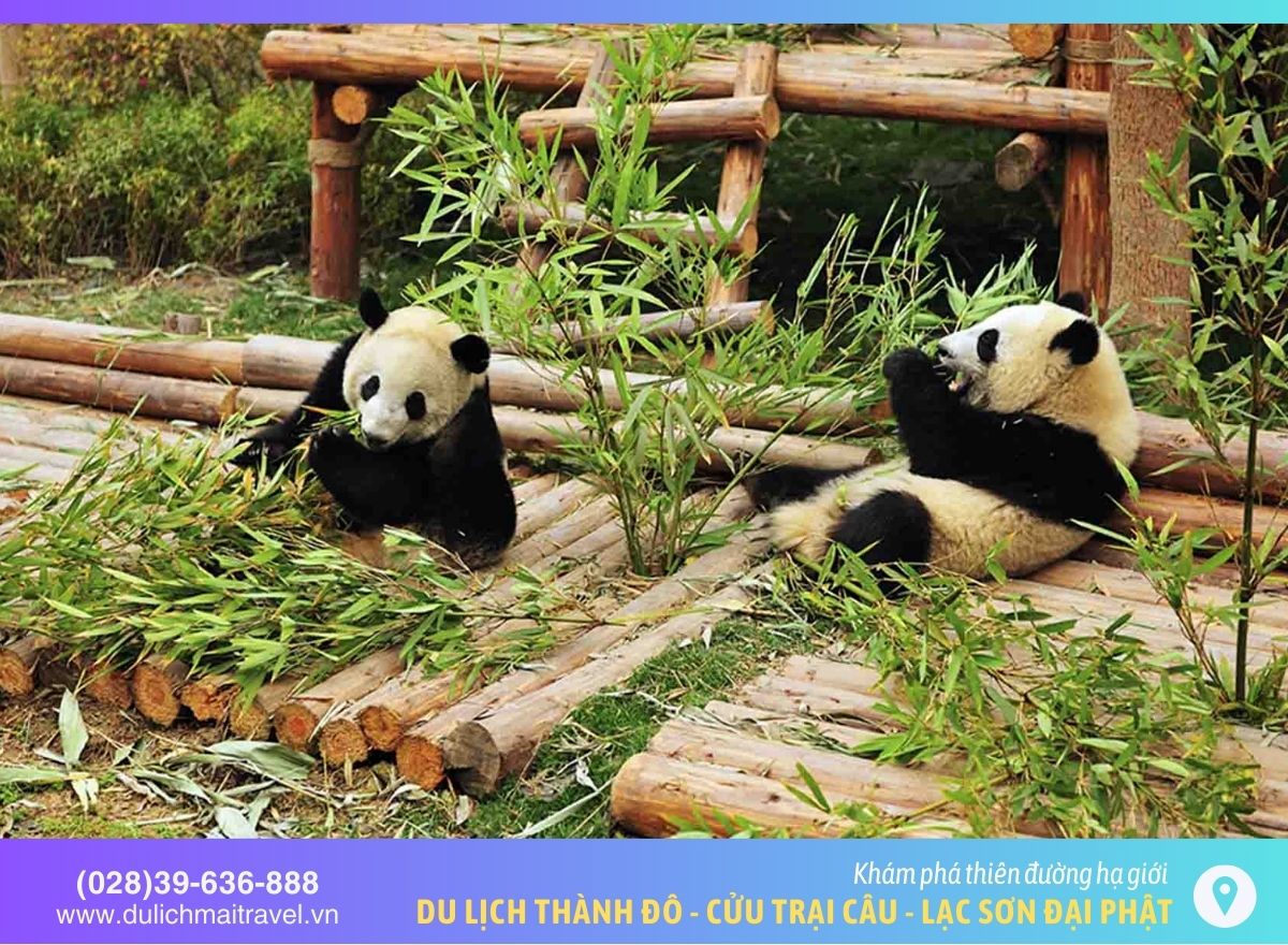 Buổi Sáng: Sau điểm tâm sáng, Đoàn khởi hành đi tham quan Cơ sở Nghiên cứu và Nhân giống Gấu Trúc Khổng lồ Thành Đô (bao gồm xe điện). Đây là “ngôi nhà thiên đường” của hơn 200 chú gấu trúc – loài động vật biểu tượng của Trung Quốc. Quý khách sẽ được chiêm ngưỡng gấu trúc trưởng thành nằm dài ăn trúc, gấu trúc con lẫy lẫy tập đi, chơi đùa trong khu vườn xanh mát. Đừng bỏ lỡ khu vườn ươm gấu trúc con (nursery) – nơi các “em bé” gấu trúc lăn lộn, leo trèo đáng yêu nhất.